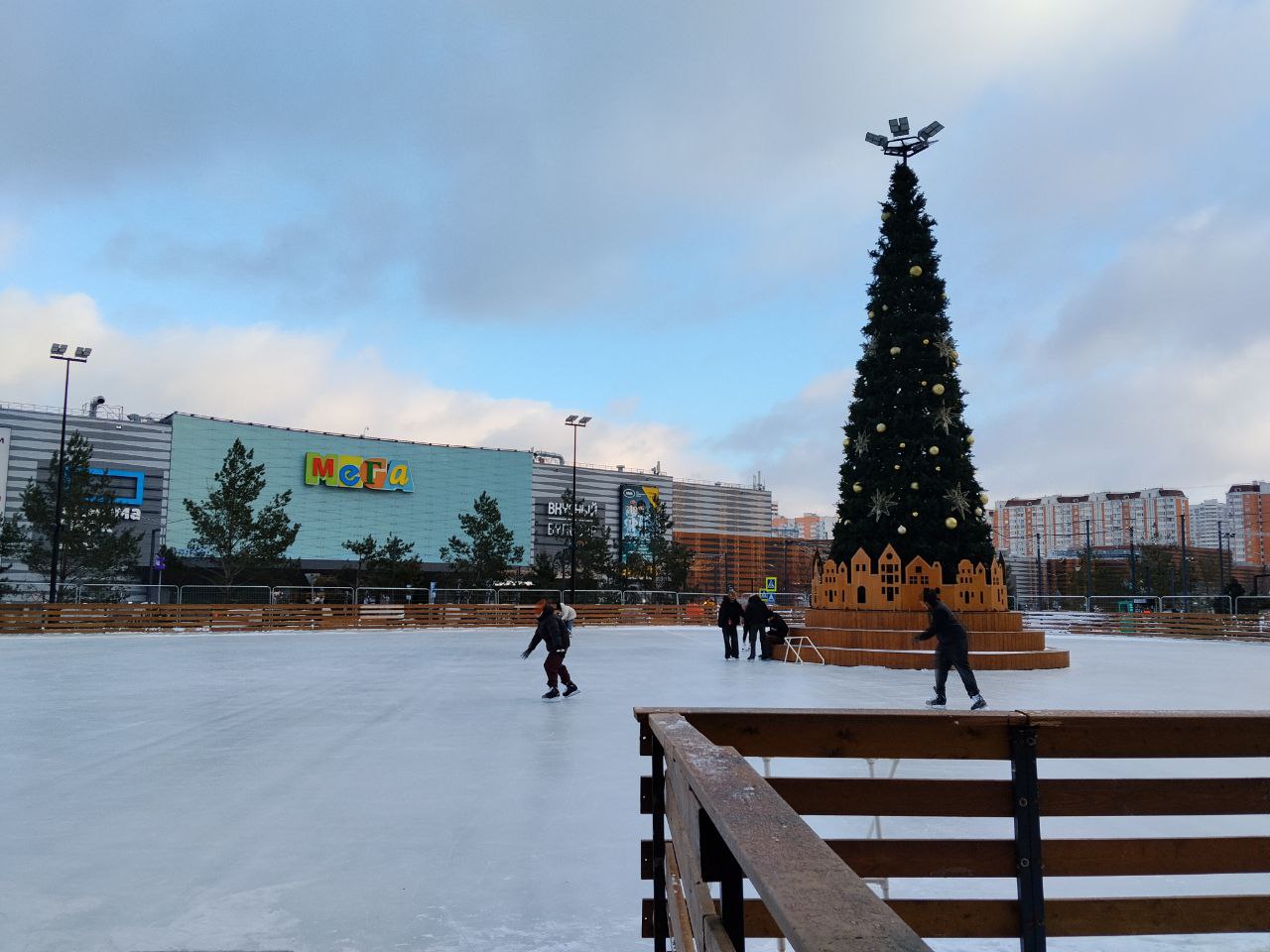 Открытый сезонный каток СпортВсегда в Мега Химки — комфортный лед под открытым небом, тёплые раздевалки, прокат коньков и регулярные тематические события.